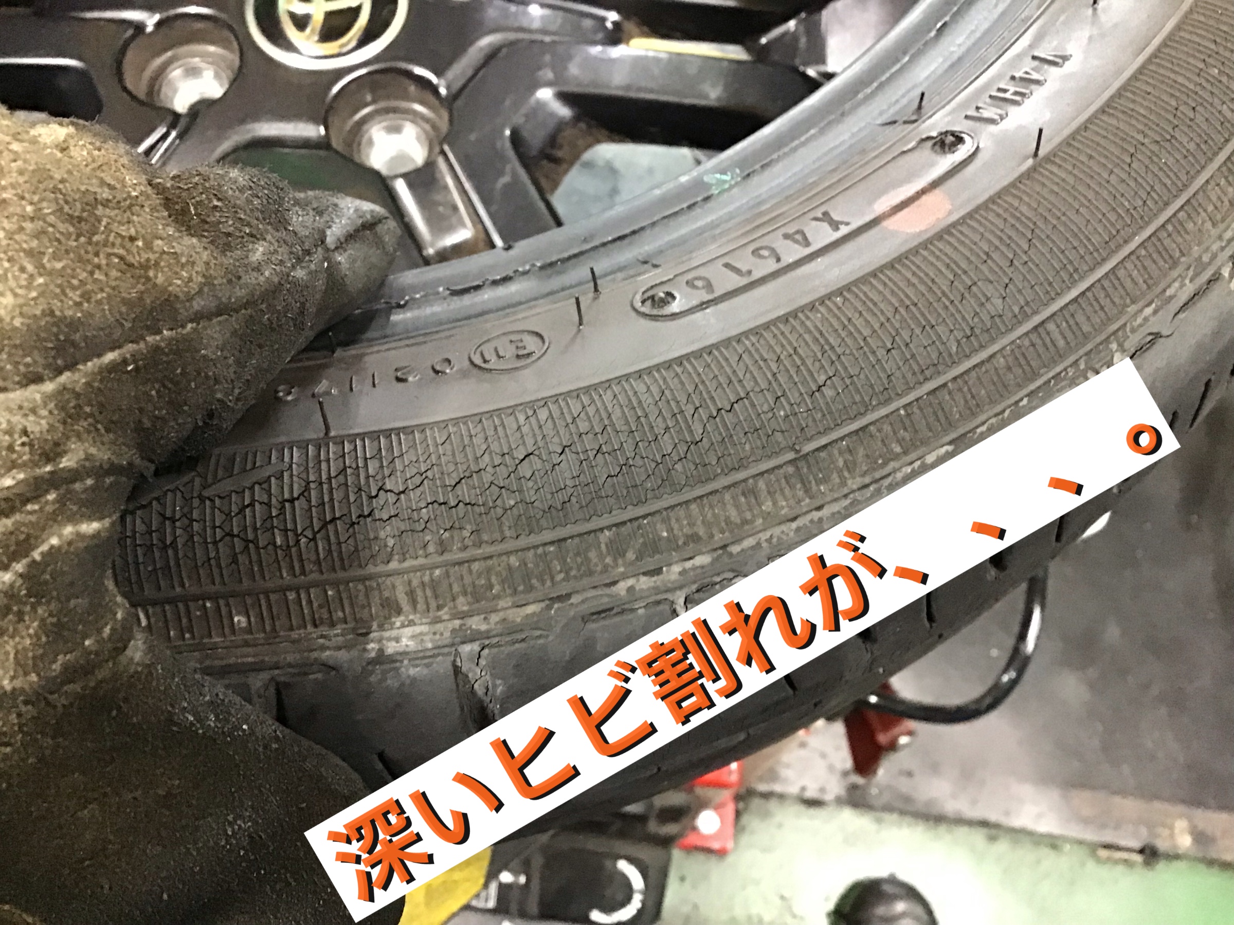 ↑今まで使用していたタイヤは新車に装着されていたタイヤだったので、経年劣化で硬化して、ヒビ割れが深ところまで見られた為、安全に運転して頂く為に新しくお取り替え頂きました!