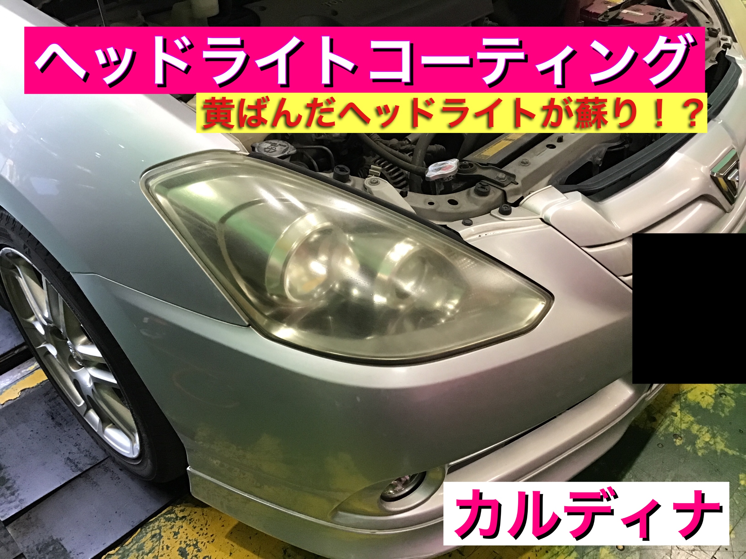 今日は晴天でしたので、トヨタのカルディナのヘッドライトコーティングの施工を行いました♪