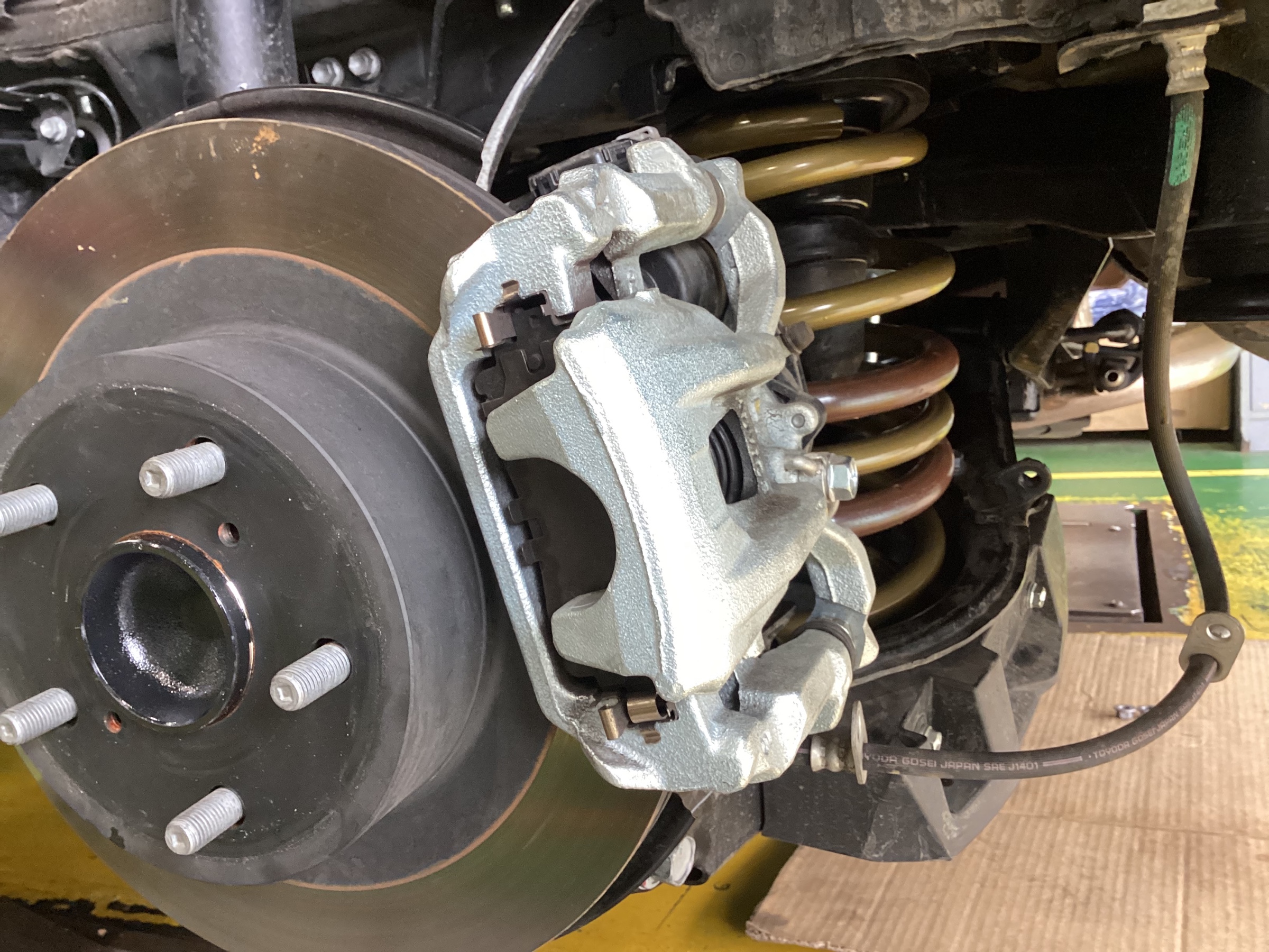 取付け後は足回り交換後に必須な作業【アライメント】でしっかりタイヤの方向を調整し、