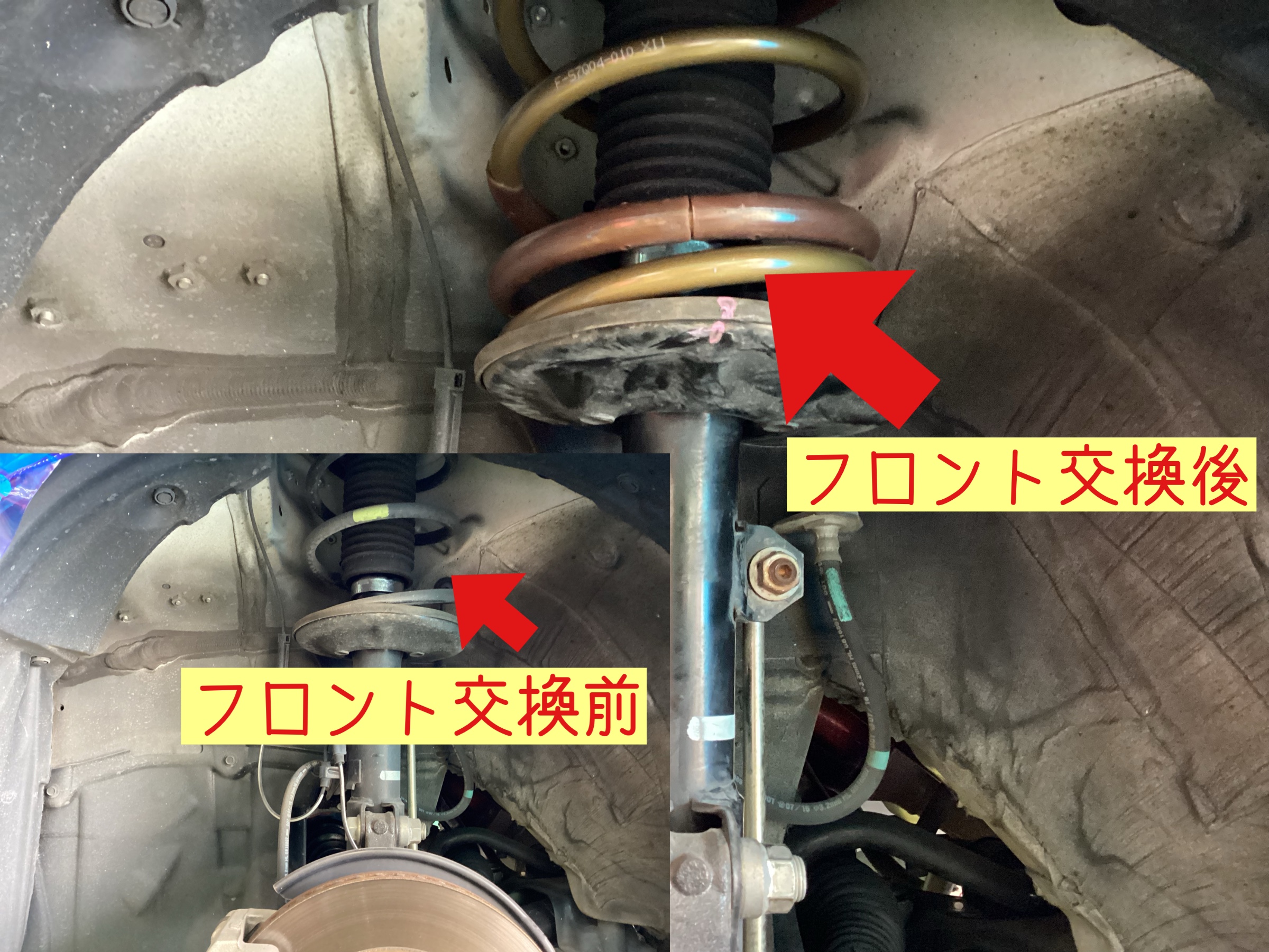 交換後はフロント約3センチ、リア約2.5センチダウンに成功!
