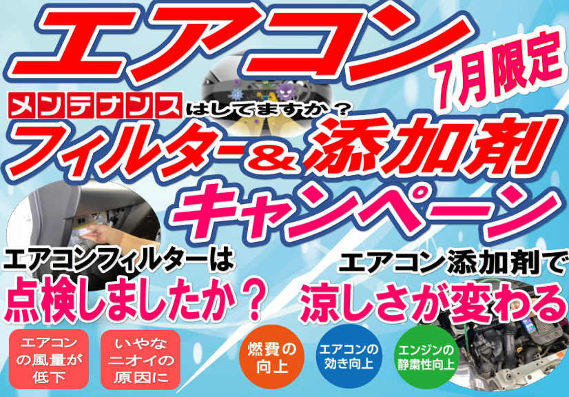 2023年 7月 カーエアコンメンテナンスキャンペーン実施中!!