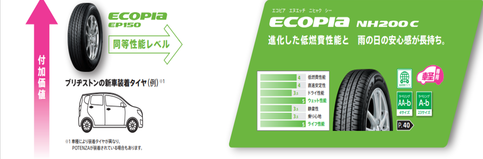 新車装着タイヤ エコピア EP150と同等品のタイヤになります。