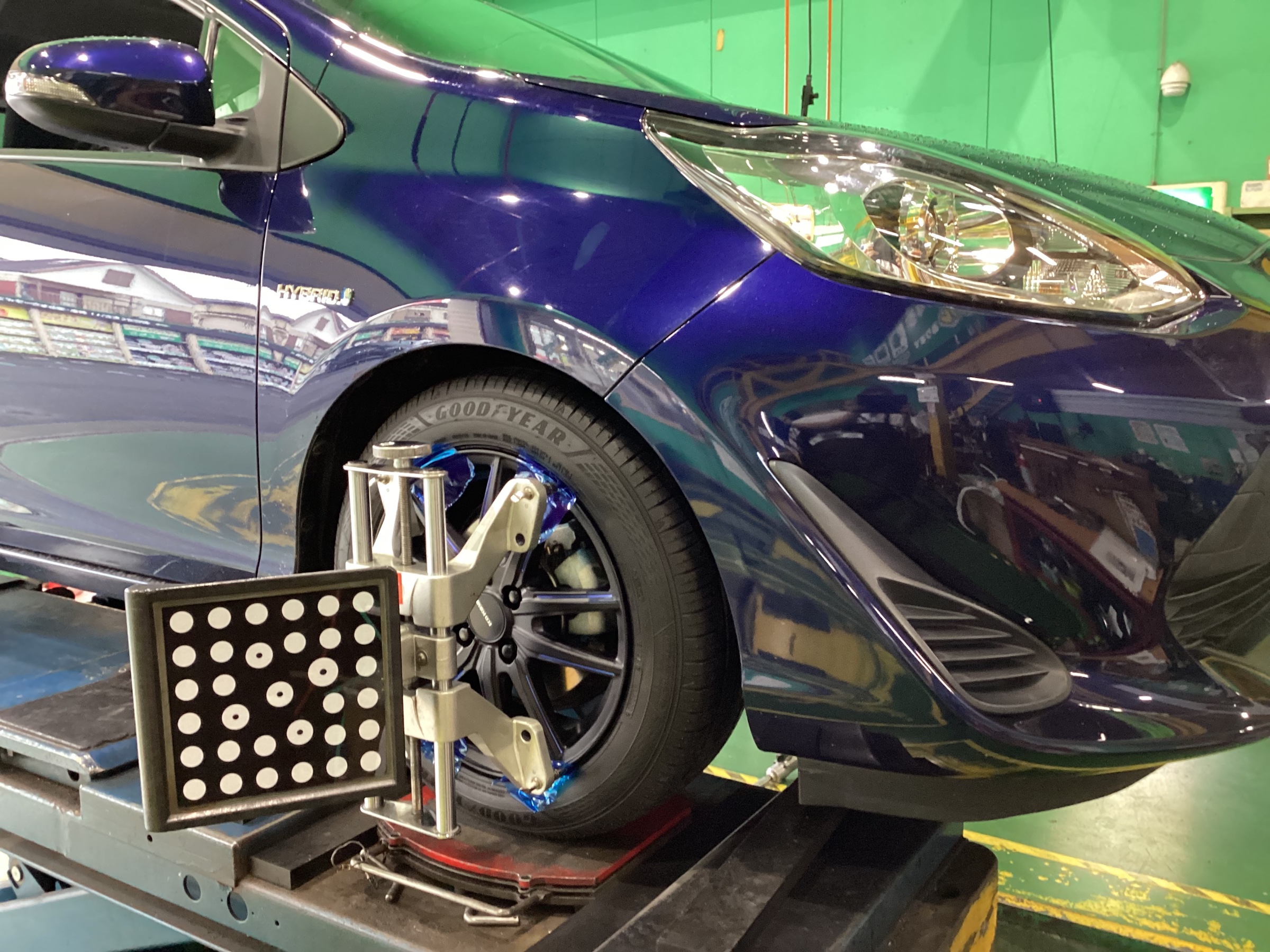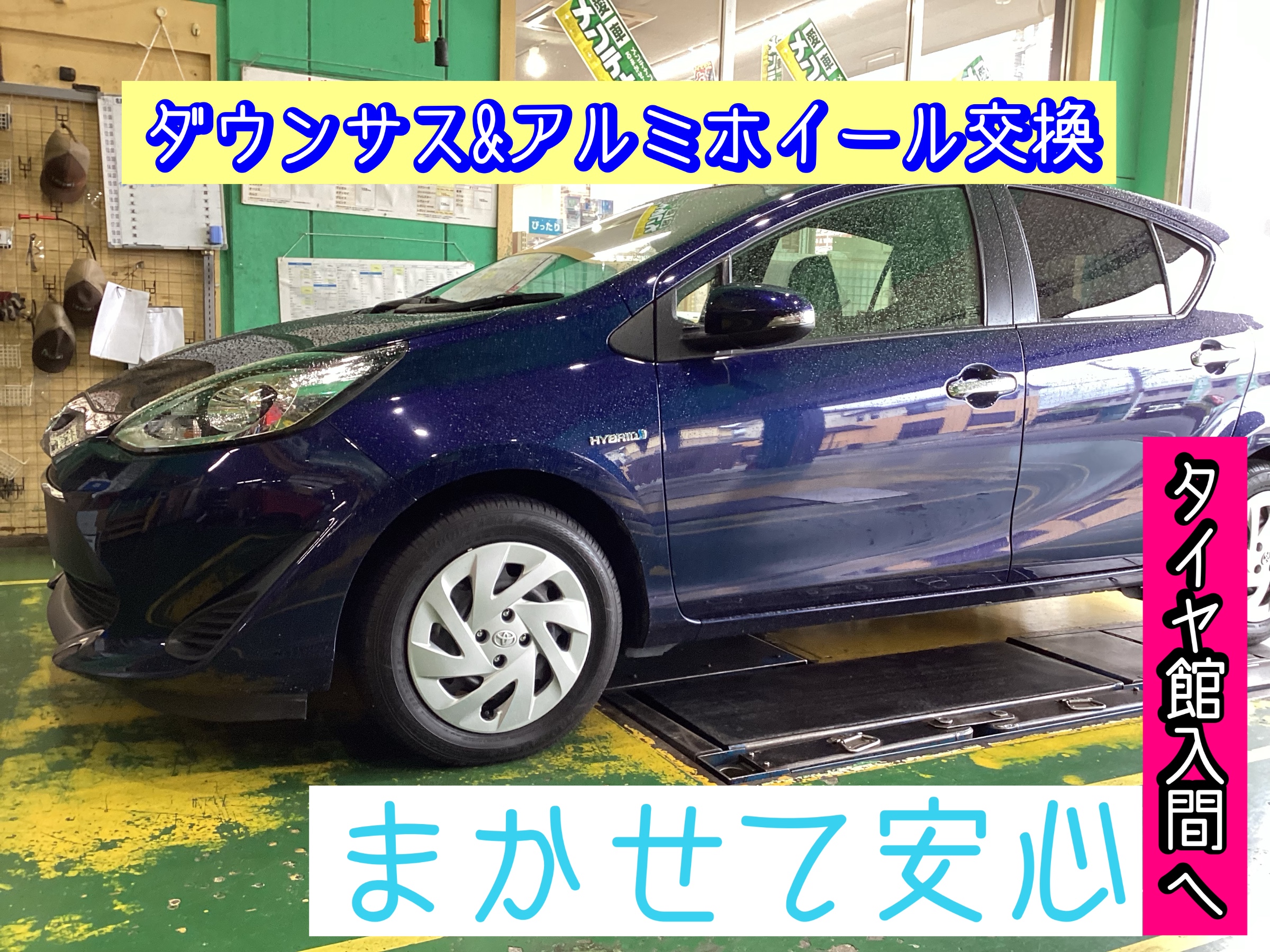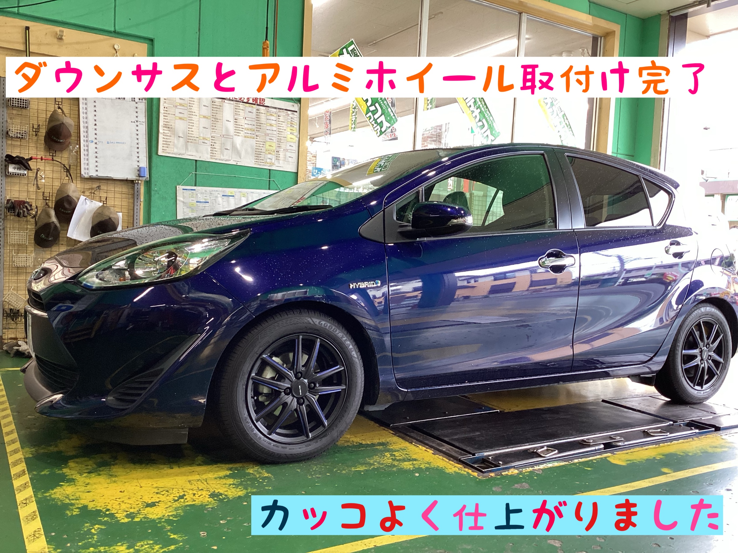 今回はトヨタのアクアにダウンサスペンション取付けとアルミホイールの交換作業を実施しましたので