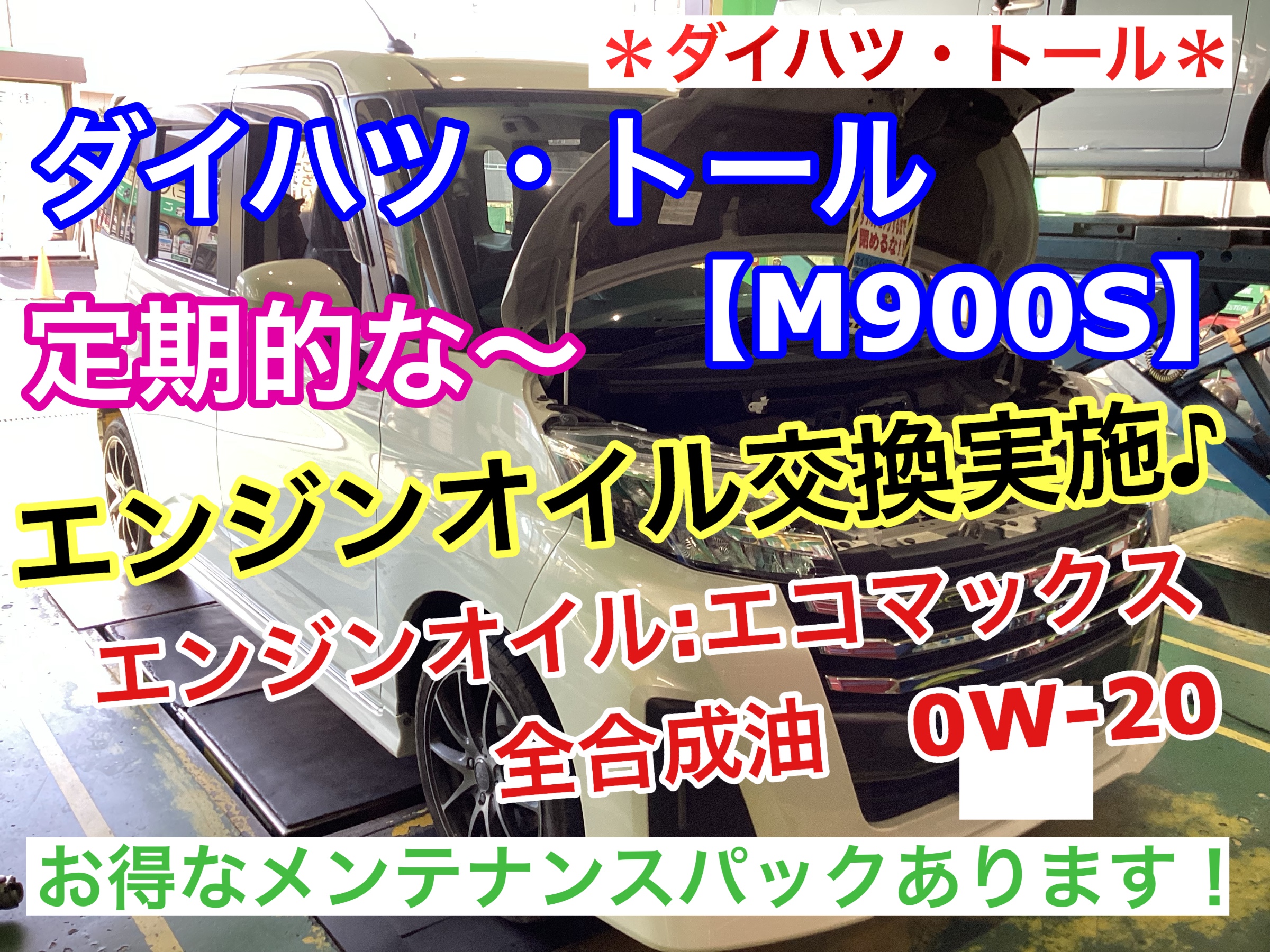 【検索用】トール オイル交換・トール・タンク・ルーミー・ジャスティ・オイル交換安い・オイル交換早い・タイヤ館オイル交換・メンテナンスパック・エコマックス・全合成油・ 所沢市・所沢・入間市・入間・狭山・入間・飯能・小手指・和ヶ原・狭山ヶ丘・林・若狭・上藤沢・下藤沢・東藤沢