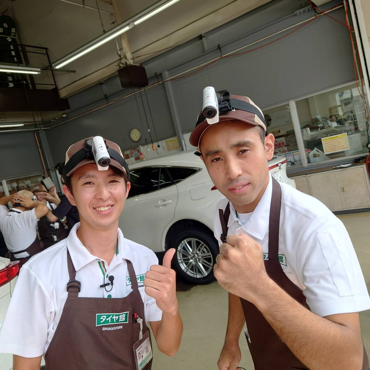 我が入間店、野口スタッフ(左)&鈴木スタッフ(右:タイヤ館川口店スタッフ)ペアが