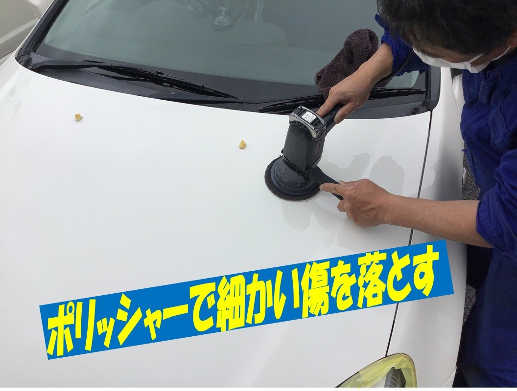 そのあとは、ポリッシャーで車両の細かい、傷などを綺麗に磨いていきます。
