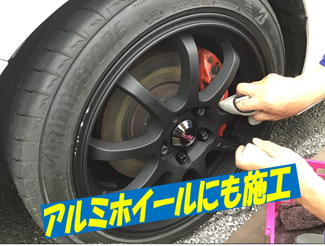 アルミホイールにも施工していき、ブレーキダストの汚れ付着抑止にもなります。