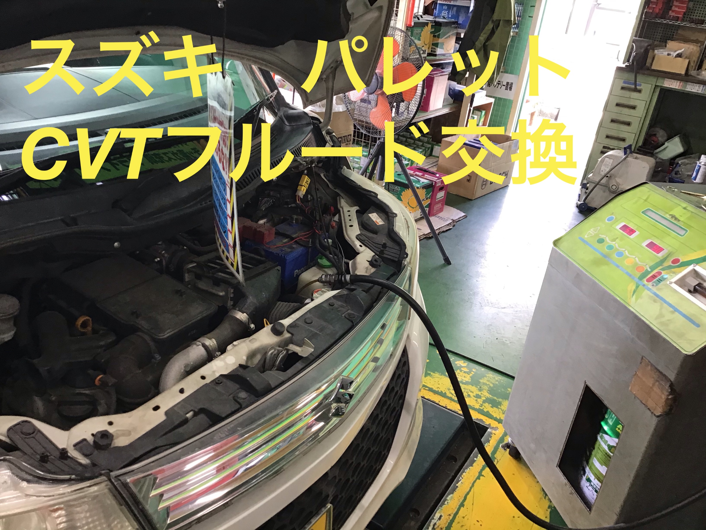 本日はスズキ・パレットのCVTF交換を作業ご紹介です♪