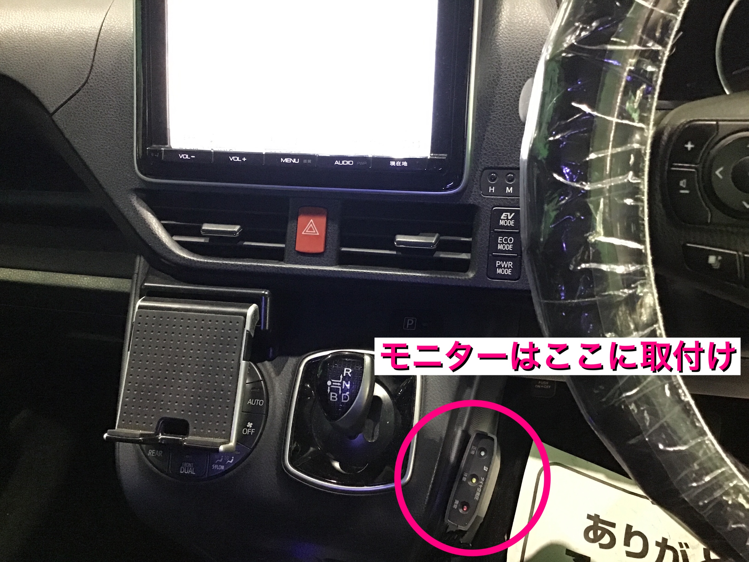 TPMSの本体のモニター取付け位置はお客様のご希望の場所を確認してから行います。