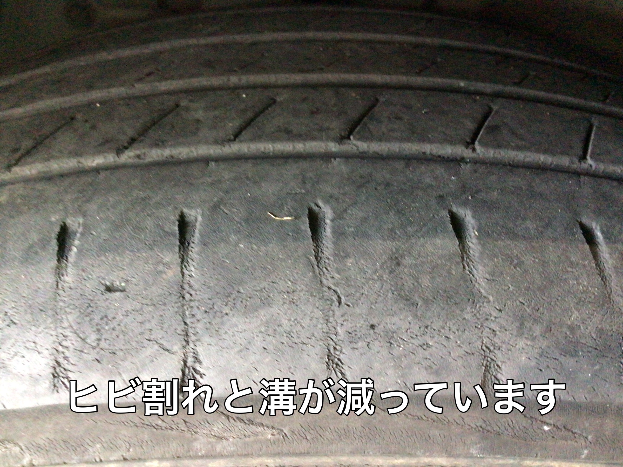 タイヤの経年劣化と溝が少なくなり、交換になりました。