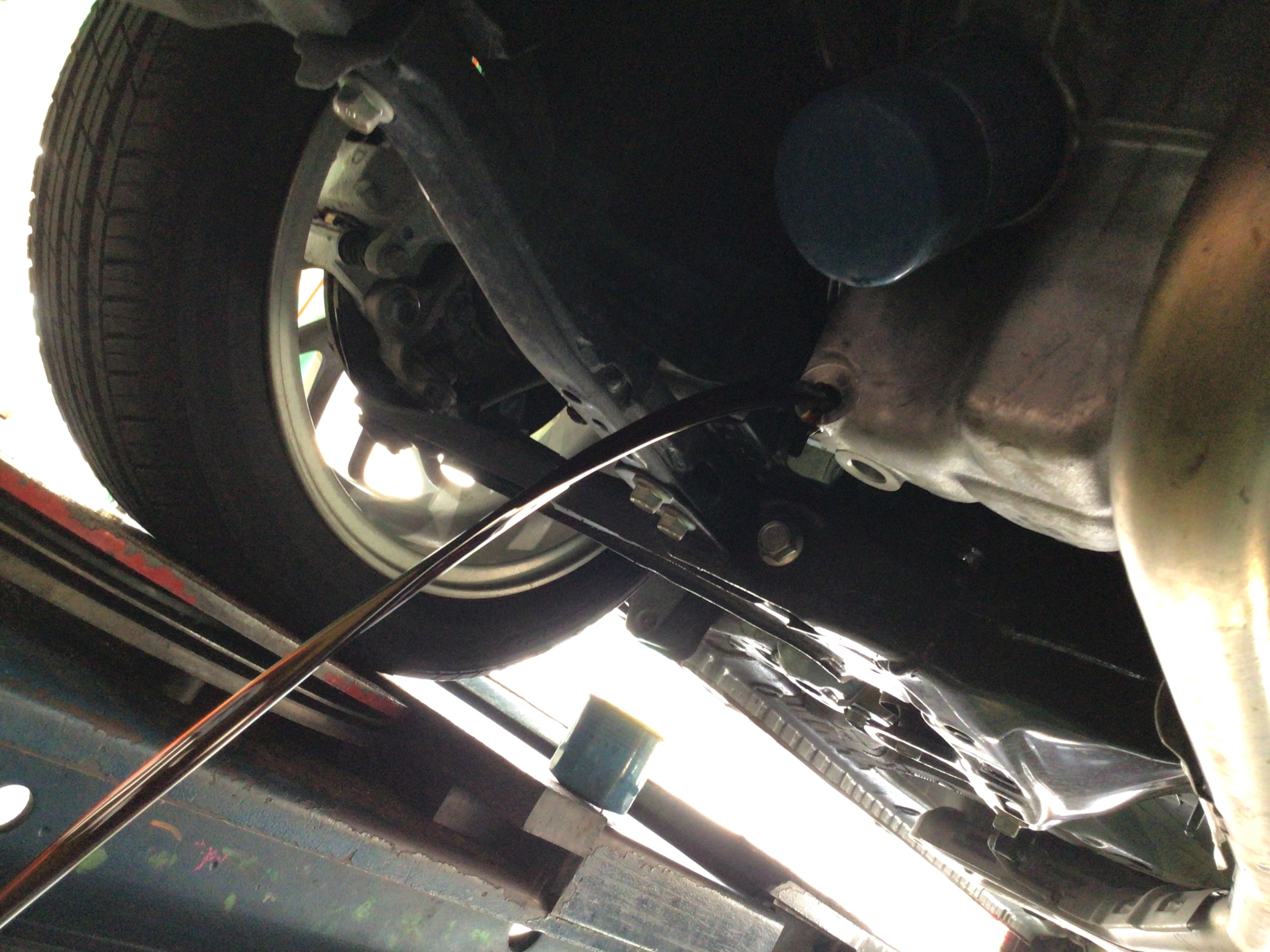 まずはリフトアップをして車両下側からオイルを抜いていきます!