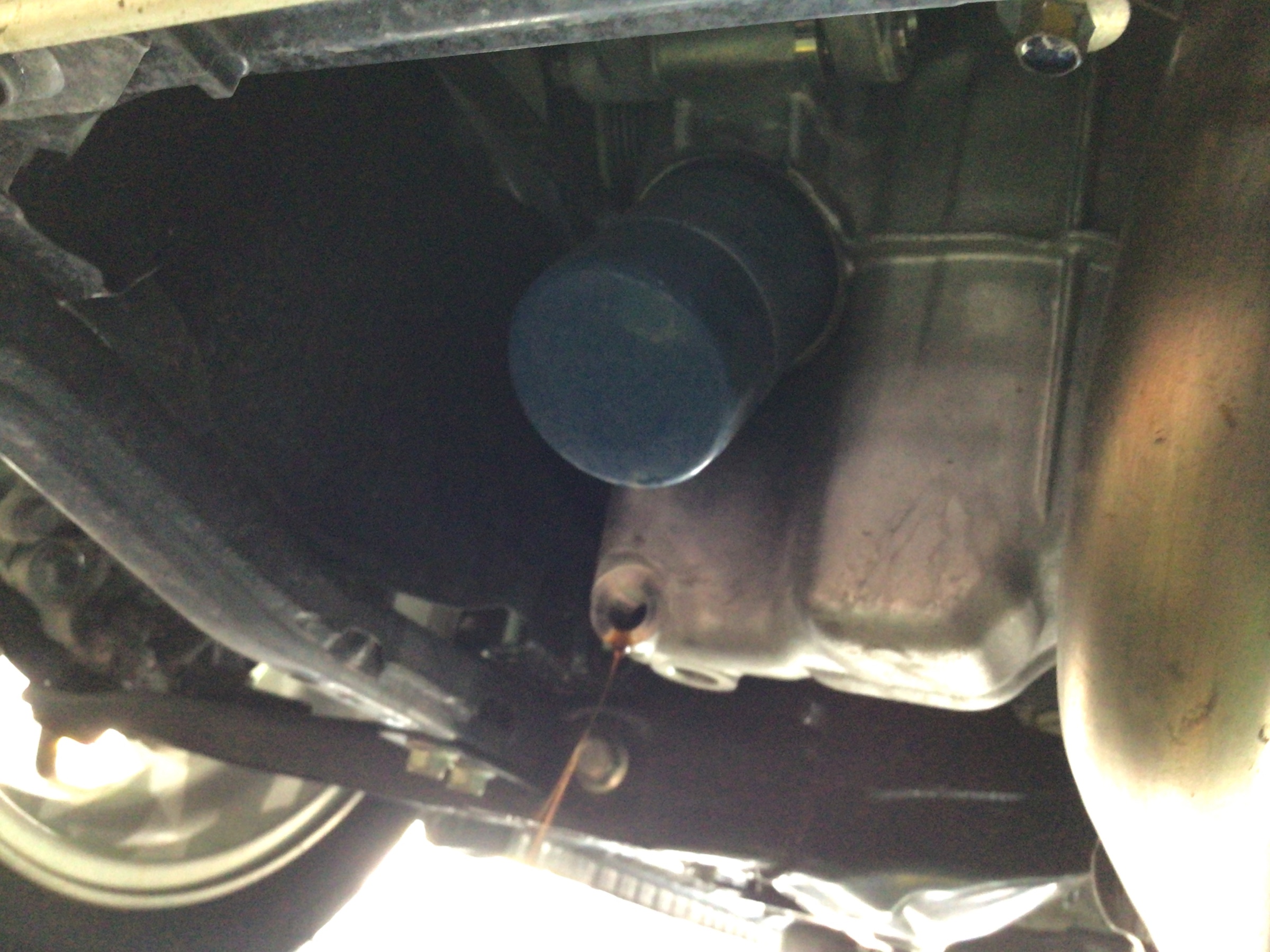 オイルを抜いてオイルフィルター(エレメント)を交換したら、車両上側からこぼれないように