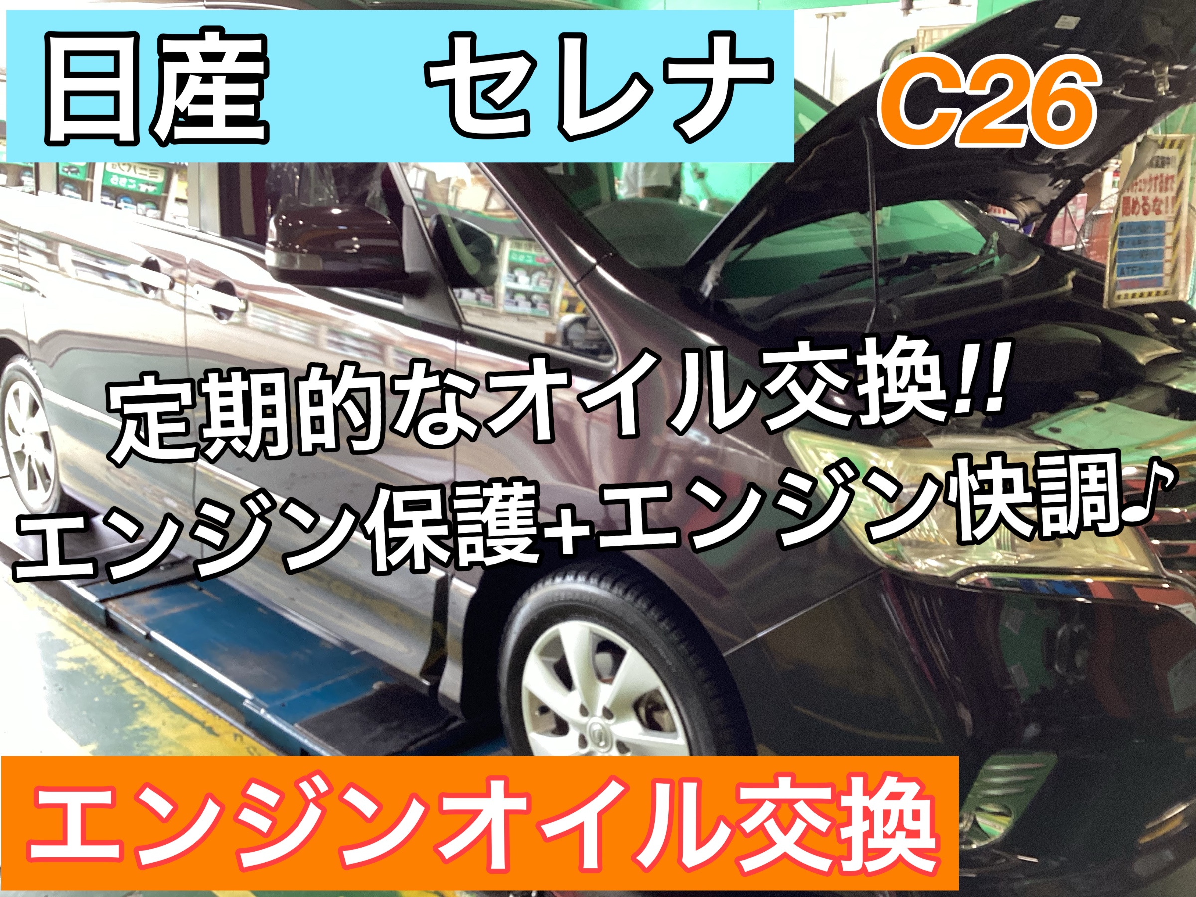 今回は、日産・セレナのオイル交換作業のご紹介をします!