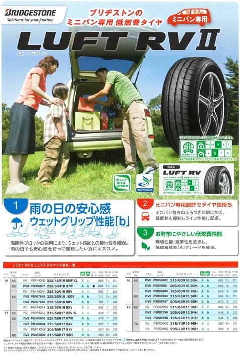 【検索用】 ブリヂストン・タイヤ・お買い得・セール・ミニバン・専用・ふらつき・低燃費・ルフト・RVⅡ・ルフトアールブイツー・所沢市・所沢・入間市・入間・狭山・入間・飯能・小手指・和ヶ原・狭山ヶ丘・林・若狭・上藤沢・下藤沢・東藤沢