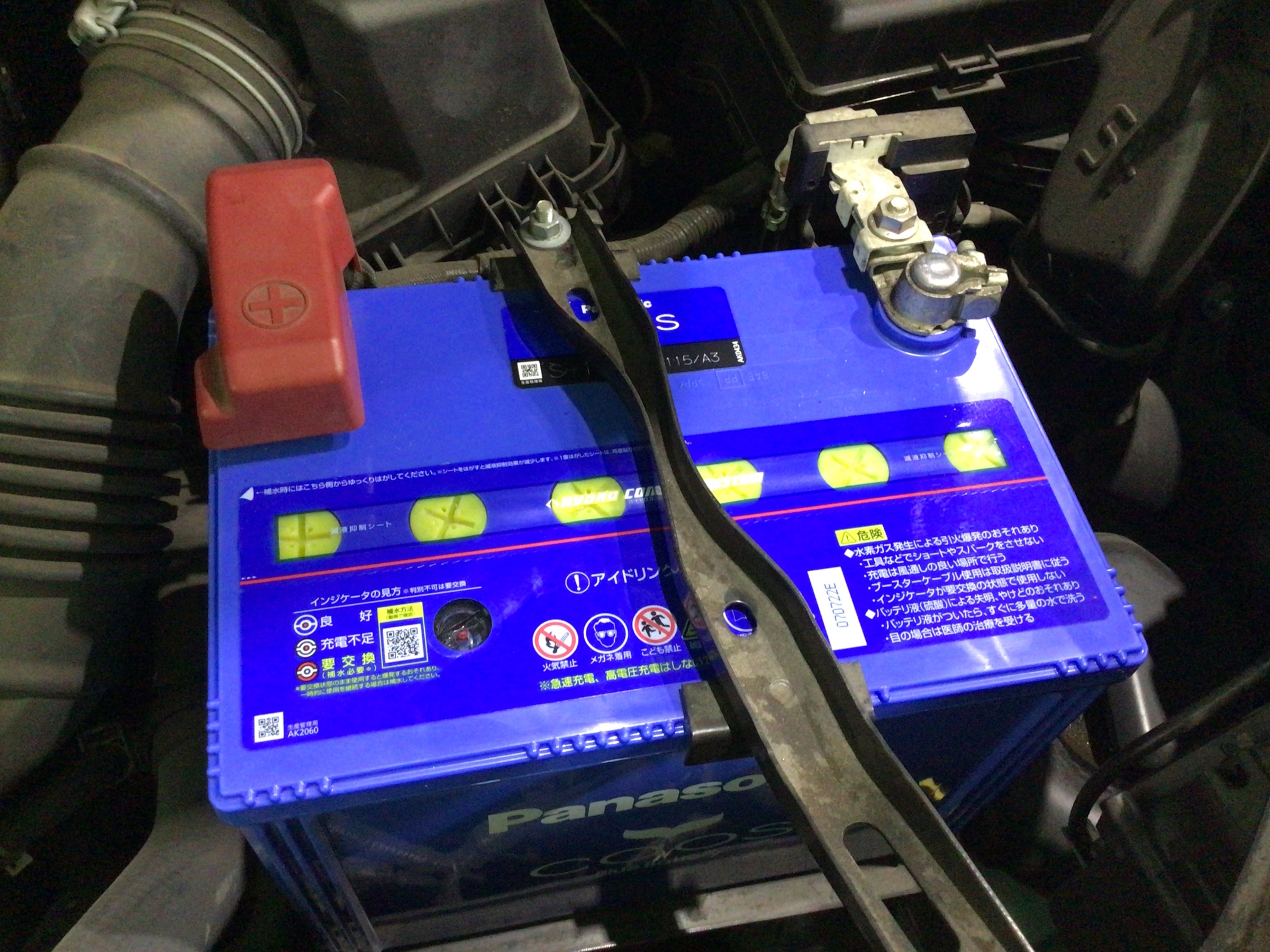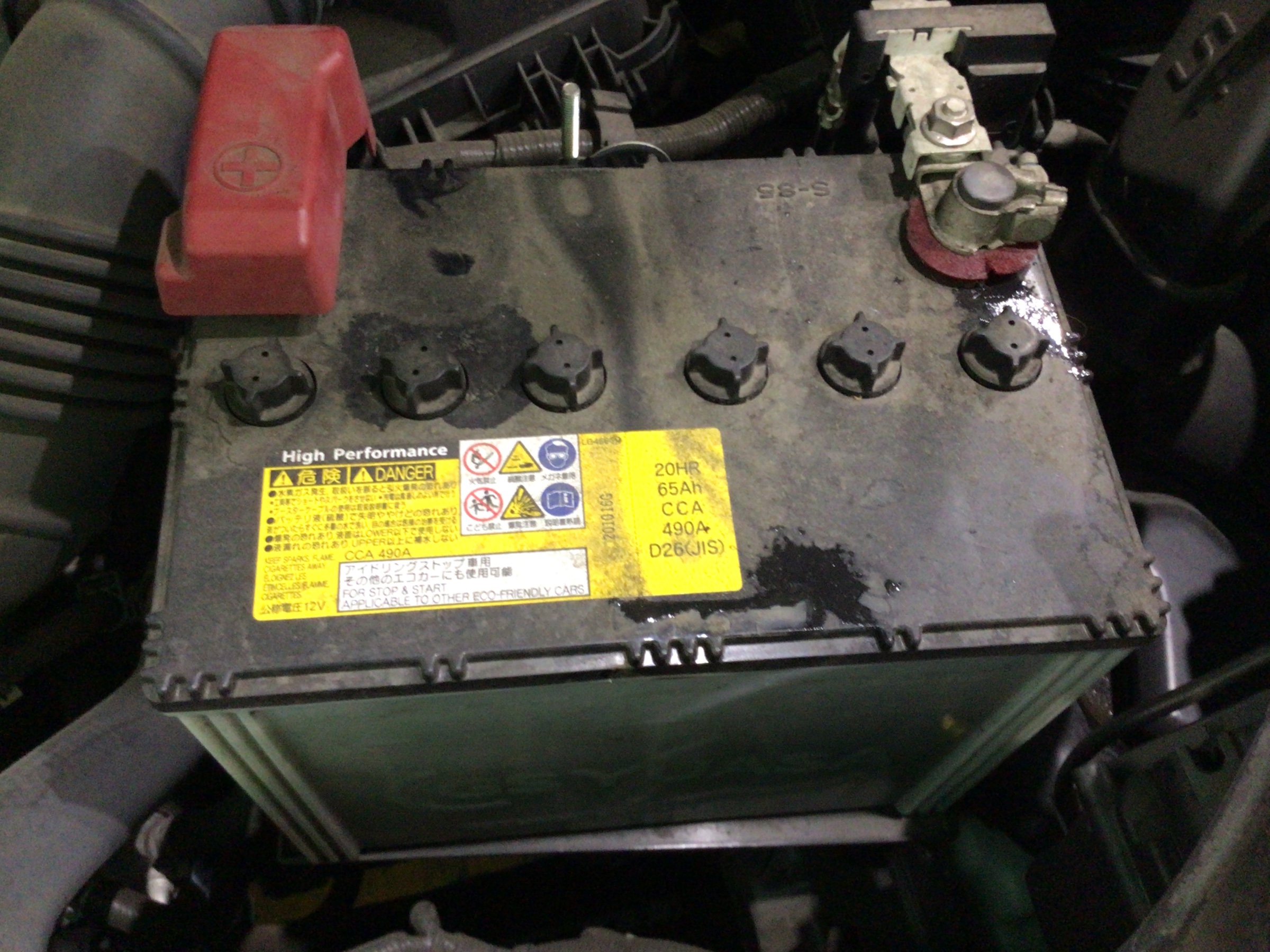 交換前バッテリーは新車装着バッテリーでアイドリングストップ車専用のバッテリーで