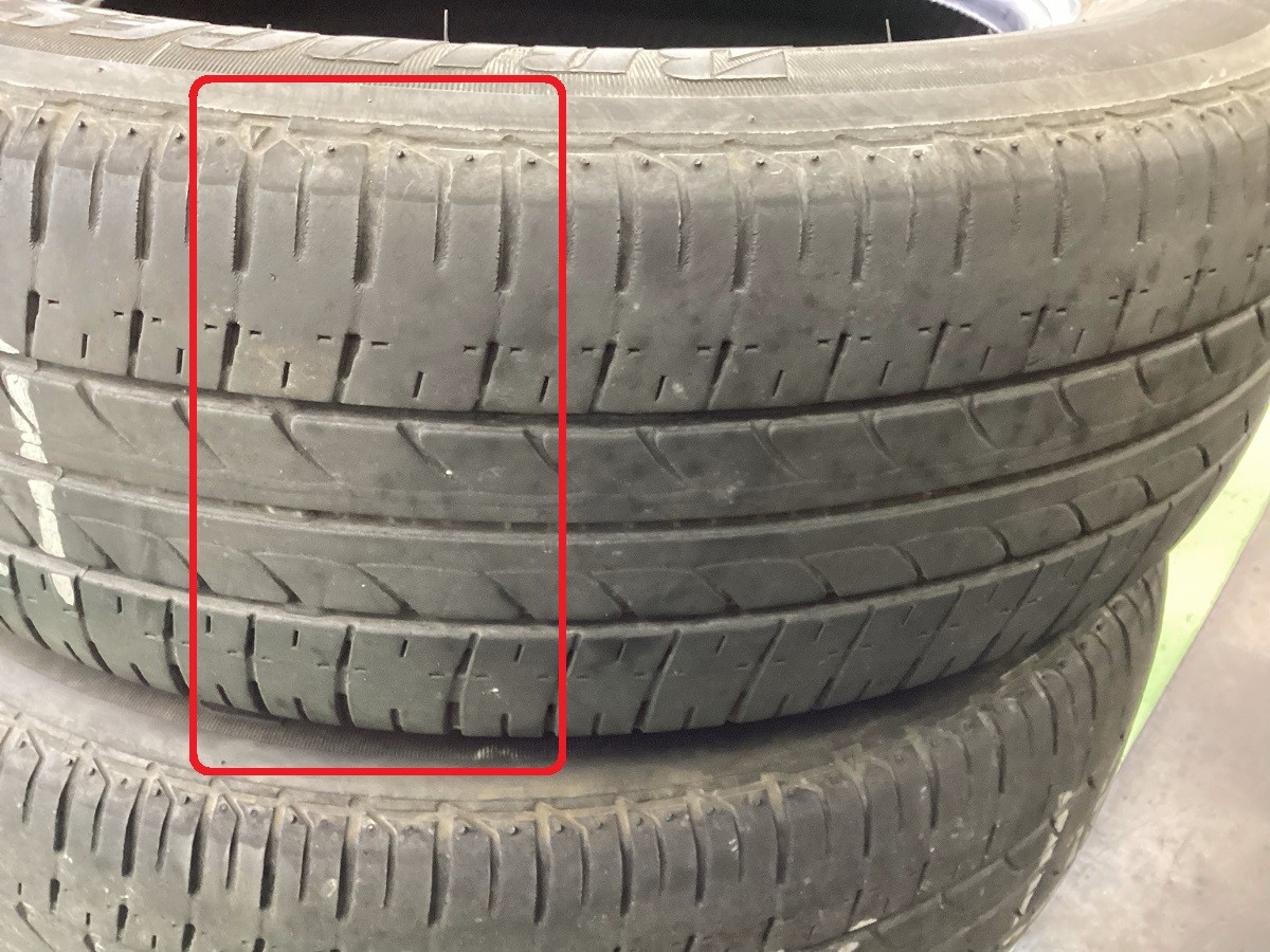 タイヤの内側と外側でそれぞれ、偏った減り方をしております。