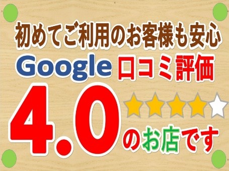 ☆★☆ 当店はgoole口コミ☆4.0のお店です('ω')ノ ☆★☆