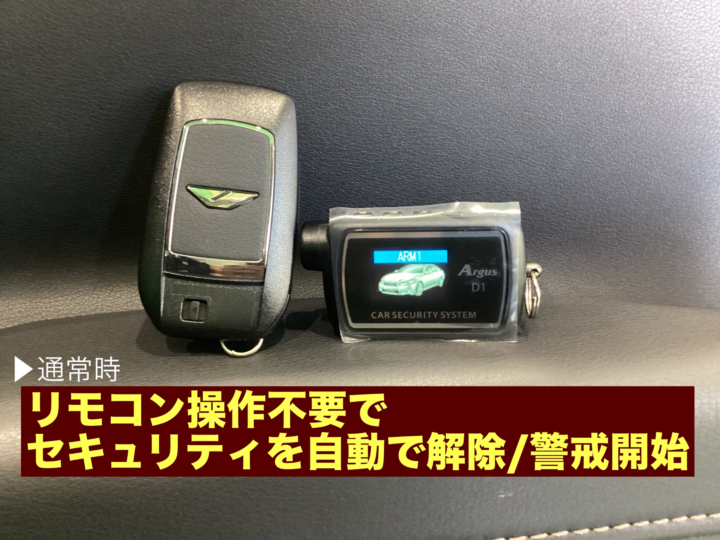 通常時は純正キーレスと一緒にアルゴスD1のリモコンを一緒に持ち歩くだけ♪
