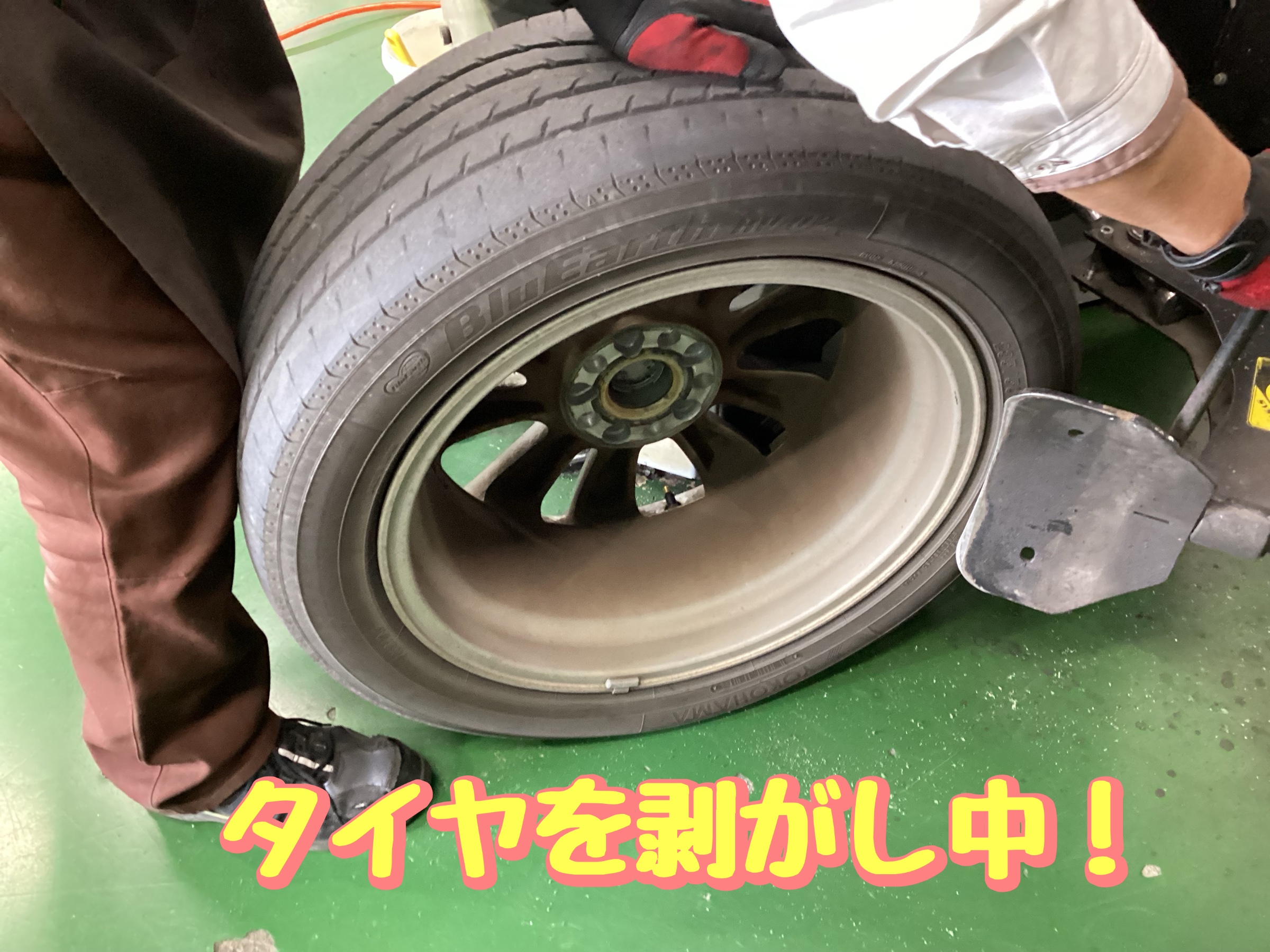 古いタイヤを剥がしていきます(^^♪