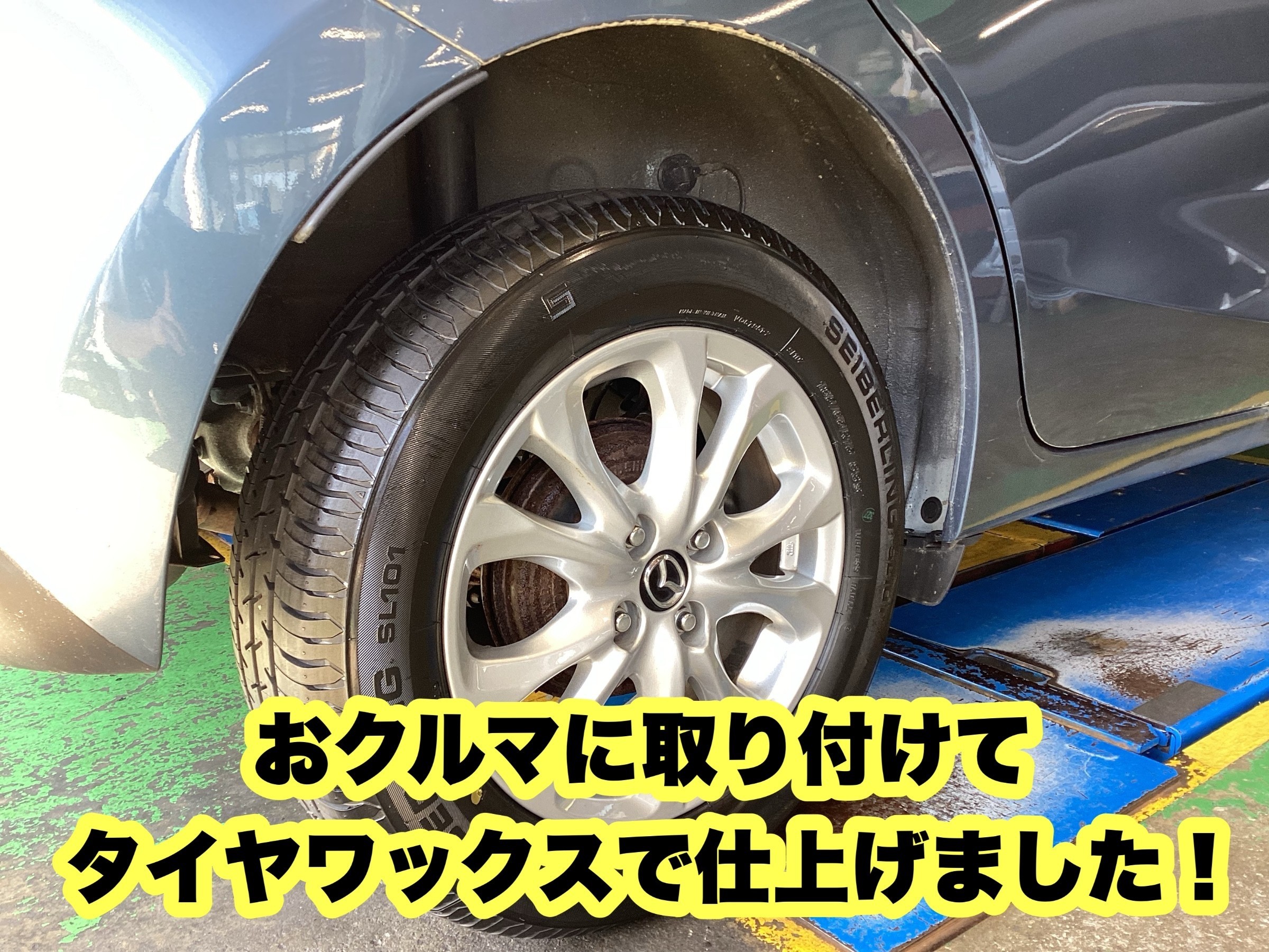 最後におクルマに取り付けて、タイヤワックスで仕上げ