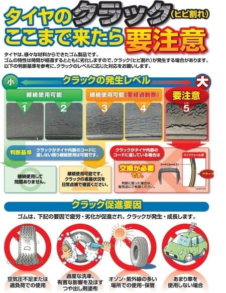 ミゾもそうですが、年数を使っているとタイヤにヒビ割れが生じてきます。
