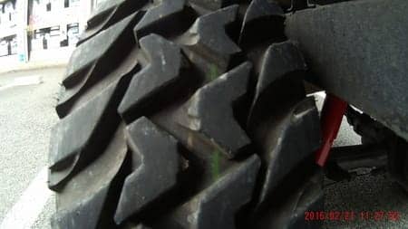 一般的なタイヤではないので聞きなれないと思いますが、4x4車用のタイヤでゴツゴツしたタイヤなんですよ。荒地、泥んこ道にすごい強いんですよ。見た目もごつくてGoodです!