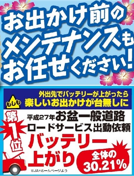 お出掛け中でのオクルマのトラブルは嫌ですよね・・・