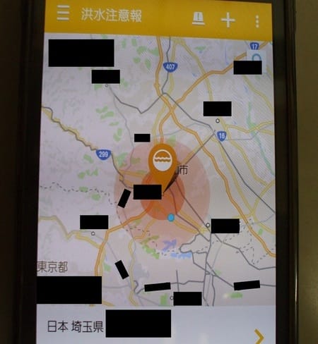 昨日の夜も携帯がピロンピロン鳴って自宅付近が大雨洪水警報の表示が。