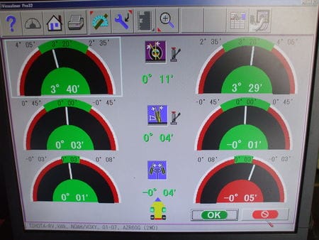 タイヤの角度がずれてしまうとお車の安定性やタイヤの異状磨耗