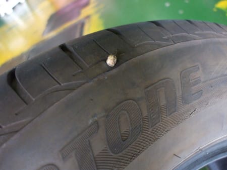ビックリ!! ポスト 2016年8月4日 パンクされてご来店のお客様。たしかにタイヤのカドに木片のような異物が・・・ホイールから剥がしてみてビックリ!!どう見てもアメリカンドッグか何かの串・・・。金属じゃなくても刺さってしまうのですね(^^;皆様も何が起こるかわかりません。すべてを防げるわけではありませんが、定期的なタイヤの点検を行いましょう♪もちろんタイヤ館では【無料で】点検いたします!!PS.ゴミのポイ捨てはヤメましょう・・・。