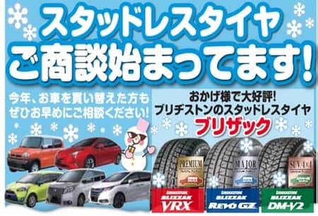 スタッドレスタイヤ ポスト 2016年8月29日 スタッドレスタイヤご商談はじまっています!タイヤ館では一年中スタッドレスタイヤがご購入いただけます。もちろんお取り付けはシーズン入ってのご希望日でOK!今年、新車をご購入された方もぜひお早めにご相談ください。