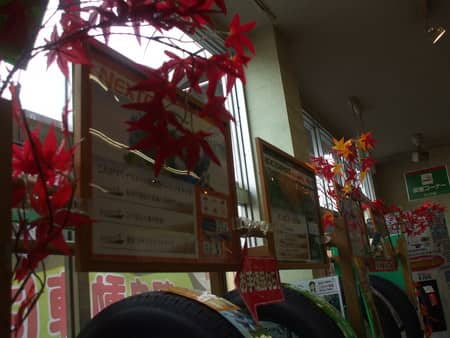 秋ですね~ ポスト 2016年9月21日 こんにちわ!タイヤ館入間です!今週に入ってからだいぶ涼しくなってきてもう秋の風を感じる今日この頃ですね♪という事で・・・店内を秋バージョンにに!***ハロウィン風に~(*´∀`)ノ-☆ (検索タグ:秋イベント ハロウィン) 担当:関根