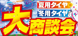 日曜日まで!! ポスト 2016年9月30日 只今開催中の"夏用タイヤ冬用タイヤ大商談会"は、あさって日曜日まで。夏用タイヤも!スタッドレスタイヤも!「「大商談会」」夏も!冬も!タイヤはタイヤ館入間店にお任せください。お気軽にご来店ください。