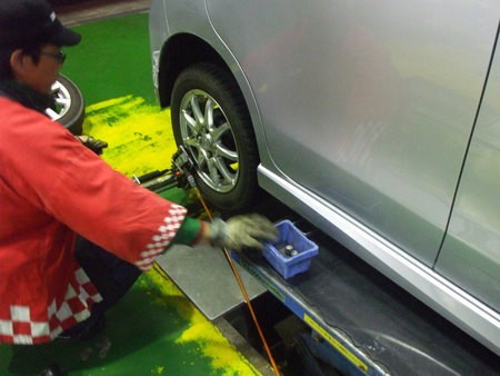 いらっしゃいましたが、作業ピットでスタッドレスに履き替えている作業を見て