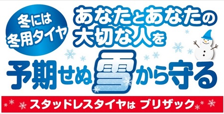 真冬並み ポスト 2016年11月21日 今週木曜日(24日)は関東真冬並みの寒さとか!!!ヾ(((°д°;)))/「初雪が降るかもしれない」との予報が出ており、朝からスタッドレスタイヤへ履き替えのお問い合わせのお電話を多く頂いております。急な降雪に困らないよう、早めの準備をおすすめいたします。検索:初雪 予報 関東 真冬並み スタッドレスタイヤ ブリザック タイヤ館