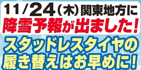 今年は早い!? ポスト 2016年11月21日 皆さんこんちは。23日から24日にかけて降雪予報がでましたね。今年は早いですよね!?異常気象とかが関係しているんんですかね?まだ履き替えがお済みでない方はお早めの履き替えをオススメいたします!! 担当:新井