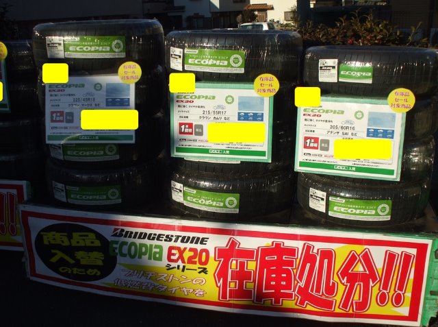 EX20シリーズ在庫処分品あります! ポスト 2017年2月12日 こんにちはタイヤ館入間店です。 先月まで現役で販売しておりましたエコピアEX20シリーズですが、2月より新商品のエコピアNH100シリーズへとモデルチェンジをしました。 そこでEX20シリーズの在庫処分セールを開催しております。在庫限りのお買い得商品になりますのでタイヤ購入を検討している方は今がチャンスですよ! 担当:小泉