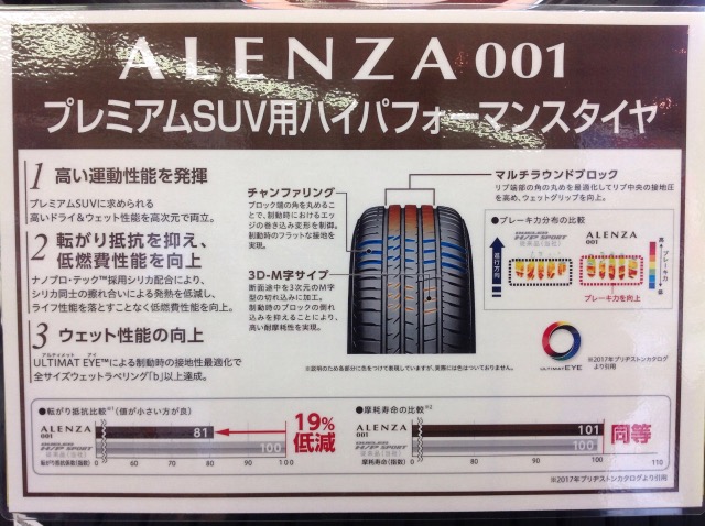今日はSUV専用タイヤ【ALENZA(アレンザ) 001】をご紹介します。