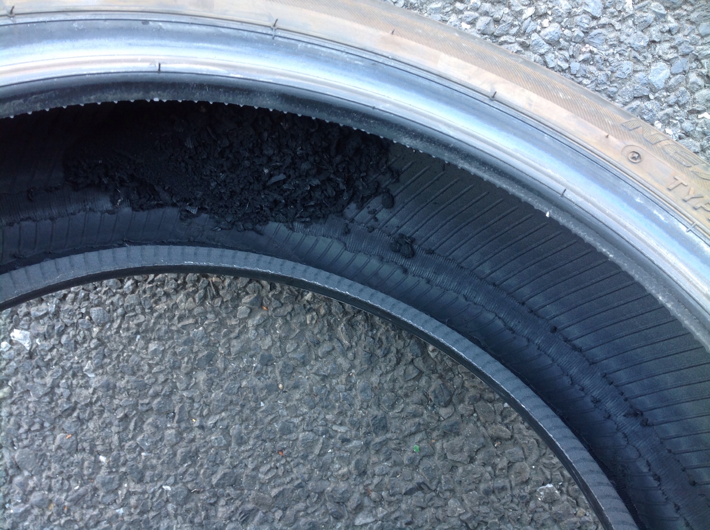 低圧走行(空気圧不足状態での走行)をすると、わずかな距離でもこのような状態になるコトがございます。
