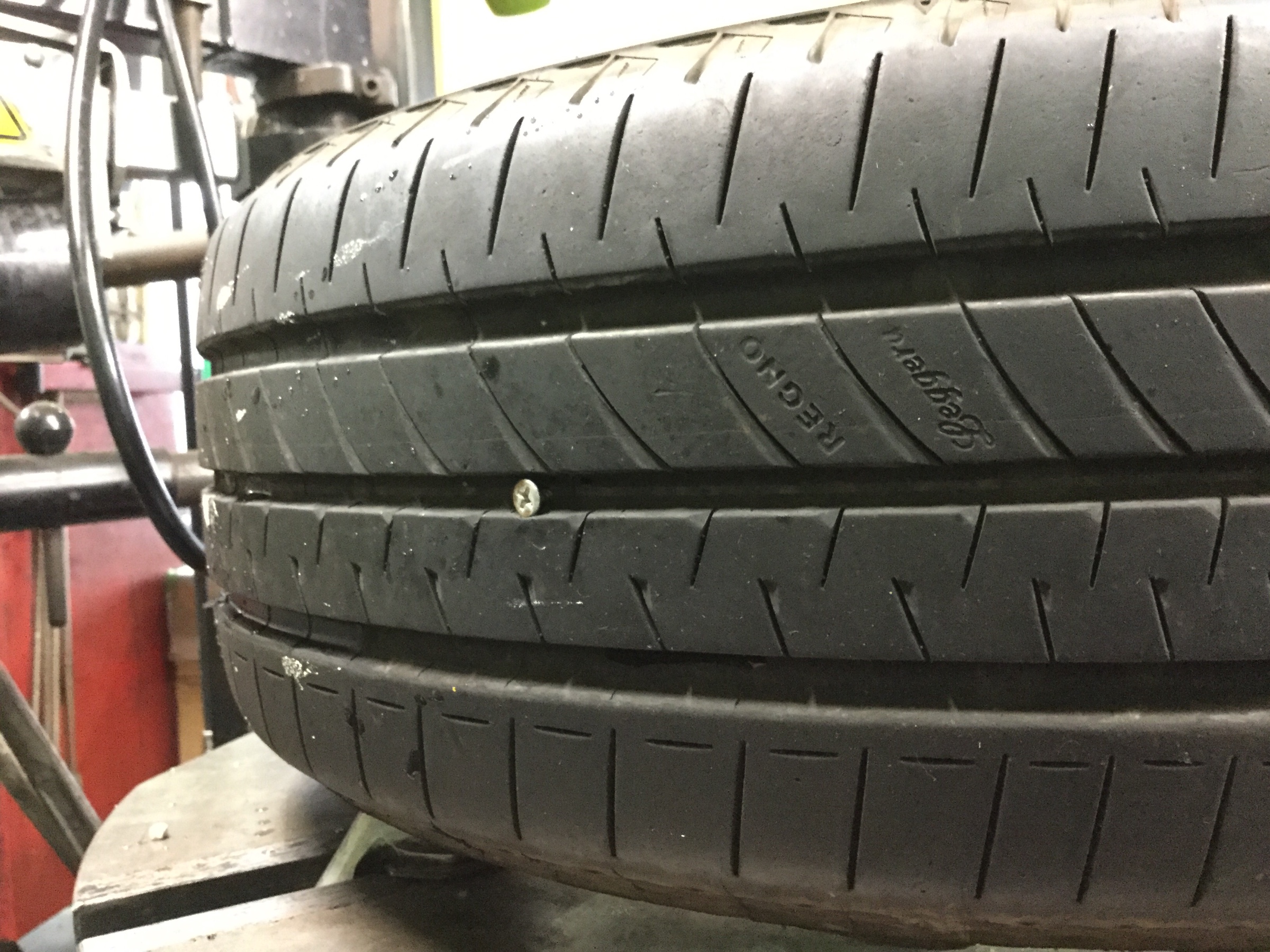 写真のようにネジや釘が刺さることでのパンクが一番多いですかね、、、