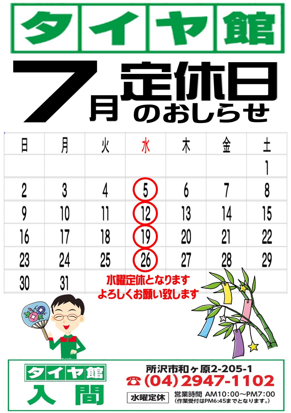 明後日水曜日7/5は定休日のためお休みとなりますので、よろしくお願いいたします。