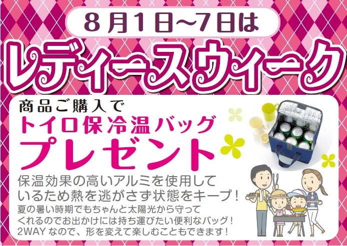 1日から7日レディースウィーク期間中は、商品お買い上げの女性のお客様にプレゼントをご用意。