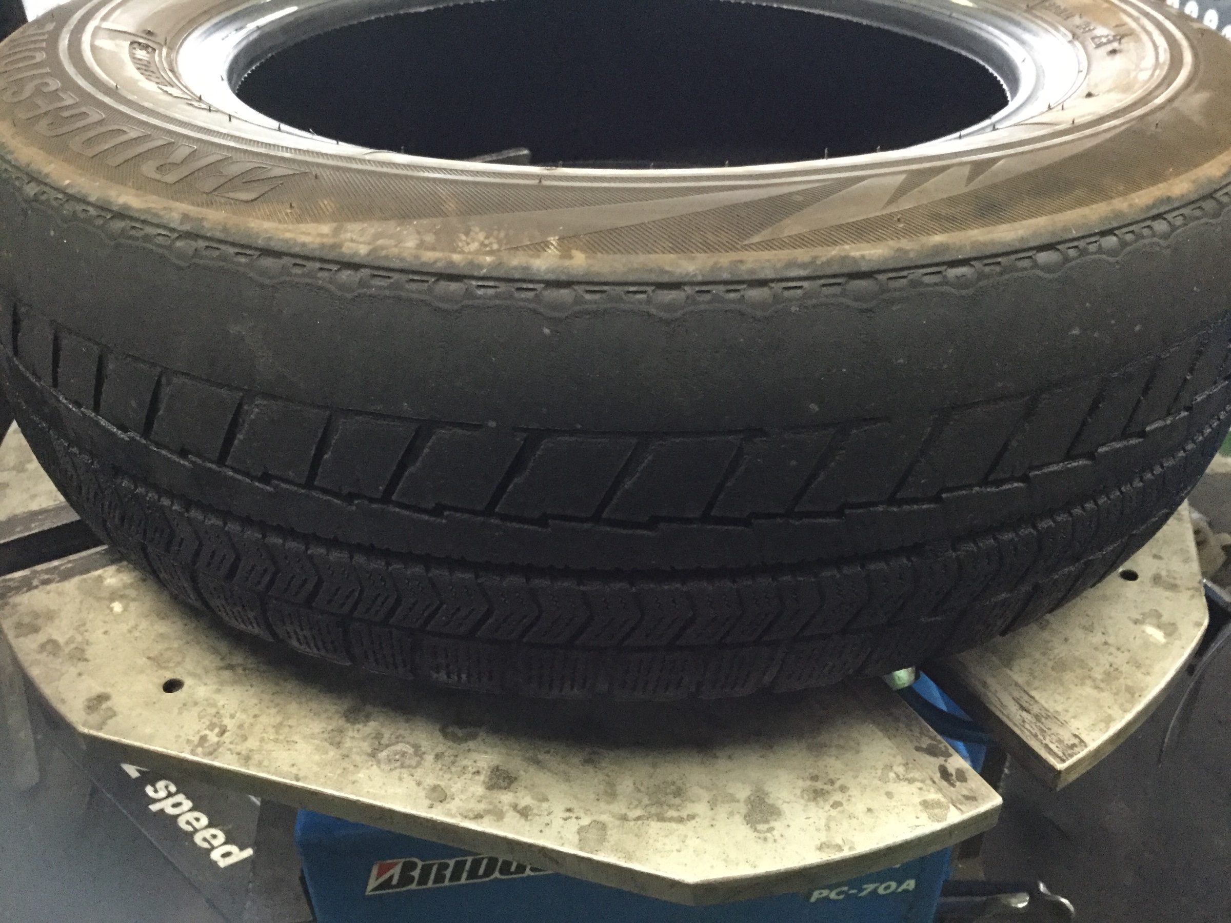 写真は極端にミゾが減っている例ですが実際に乗られていたお客様は気づいていませんでした。