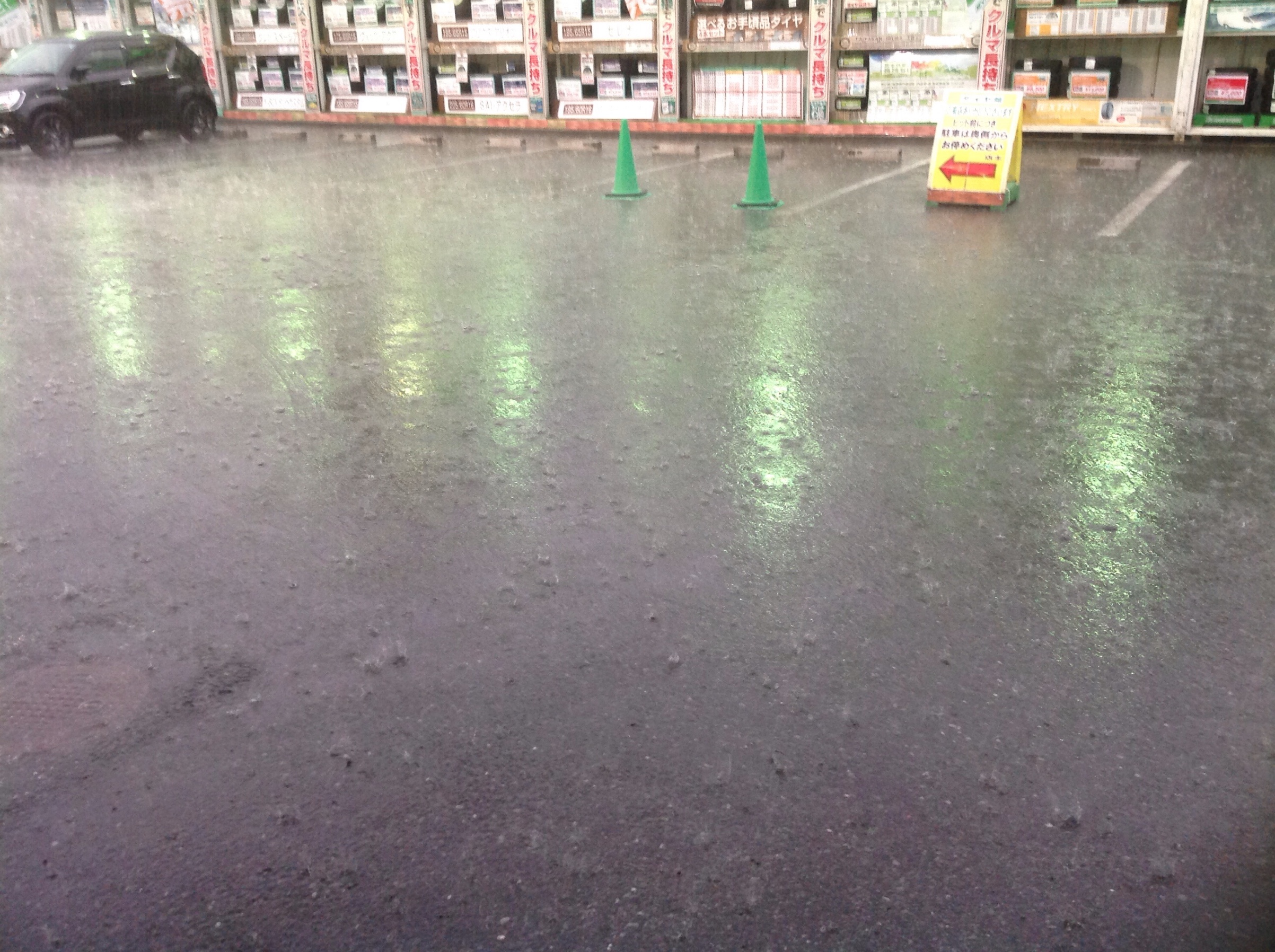 まさかの夕方に凄いゲリラ豪雨ですね!雨の勢いが凄すぎてピットにまで水しぶきが来るくらいです(;゜0゜)!