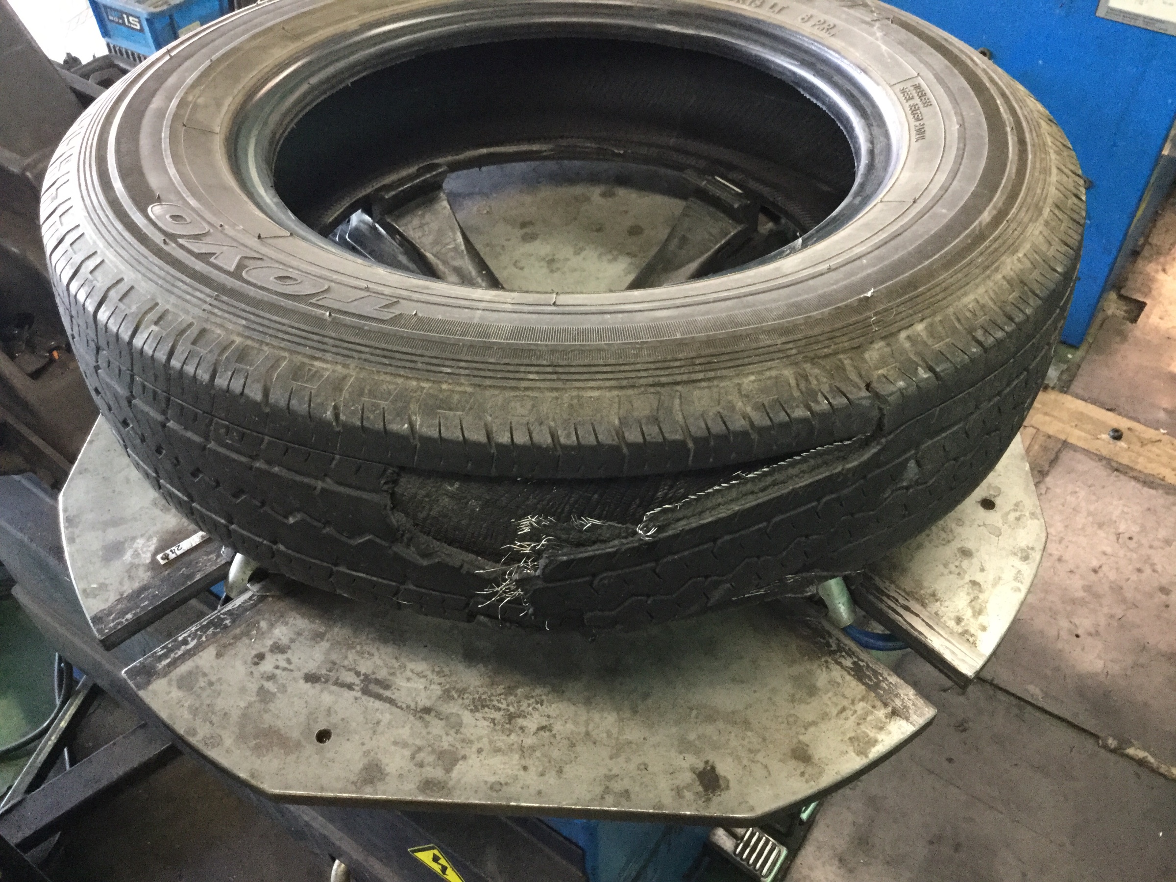 今日ご来店されたお客様のタイヤが凄いことになっていました!!