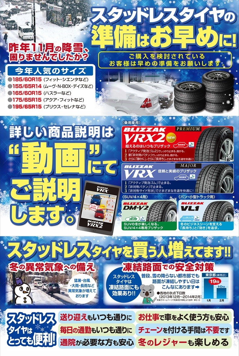 【検索用】イベント・セール・リニューアル・安全点検・タイヤ点検・タイヤ交換・履き替え・付け替え・ブリヂストン・ブリジストン・ブリザック・BLIZZAK・VRX2・VRX・冬タイヤ・レグノ・プレイズ・エコピア・ネクストリー・デューラー・アレンザ・オイル交換・バッテリー交換・ATF交換・CVT交換・ワイパー交換・エアコンフィルター交換・所沢市・狭山市・入間市・飯能市
