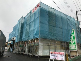 先日店舗に足場が組まれ、本日は塗り屋さんがガレージを塗装してくださっています。