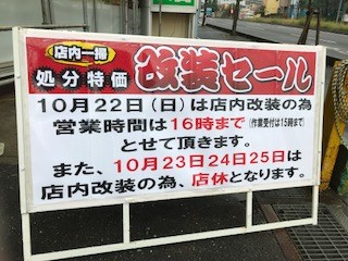 「改装前セール」開催中!店内在庫一掃!改装につき処分特価で売り尽くし!