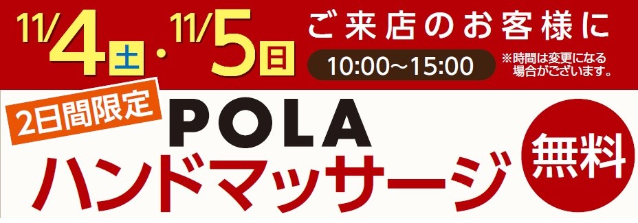 本日4日と明日5日は『女性限定サービス』として、ご希望の方にはPOLA様がハンドマッサージをしてくれます!