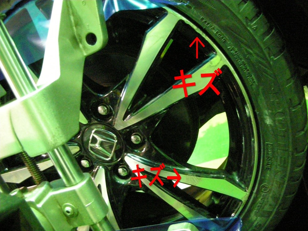 では本題に。タイヤ交換をご希望されていたお客様。初めはアライメント作業はいらないとおっしゃっていたのですが、左前のホイールをぶつけた経験があるコトや、たしかに言われて見れば安定性が悪いけど・・・そういうクルマだからと思っていた。とのことで作業させていただきました。